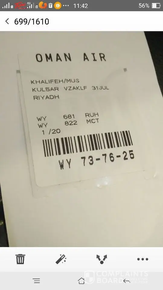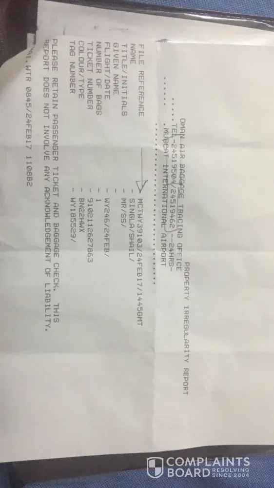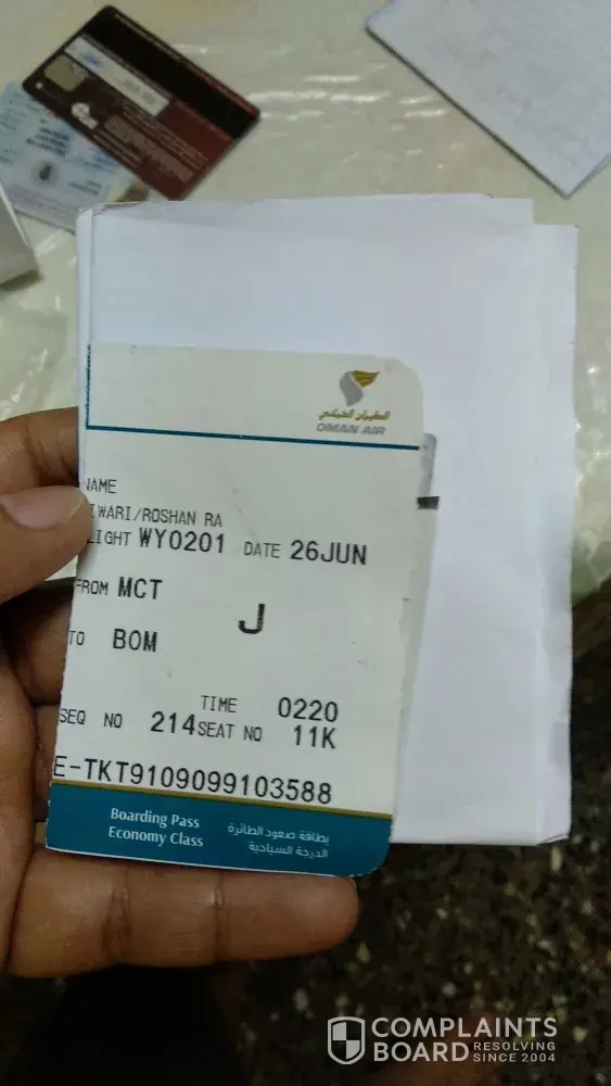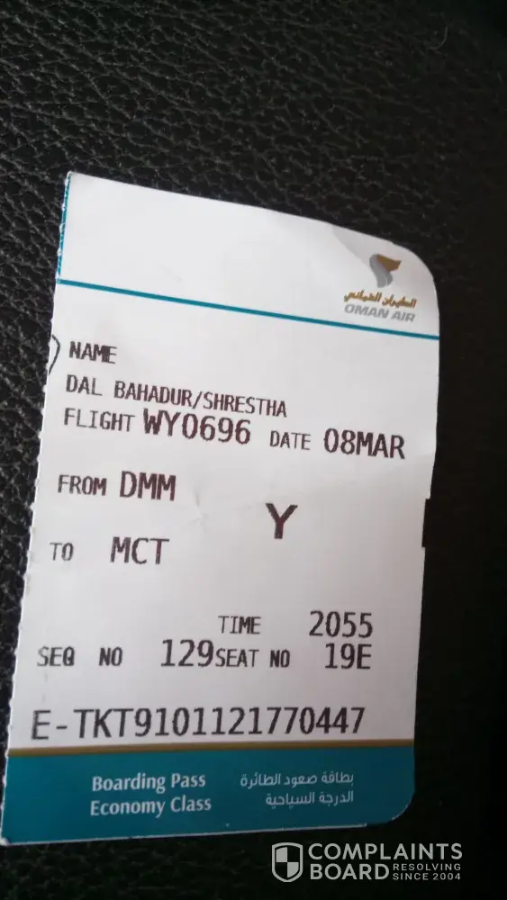 I have travelled through Oman air on 3rd April 18, form momma-muscut-najaf