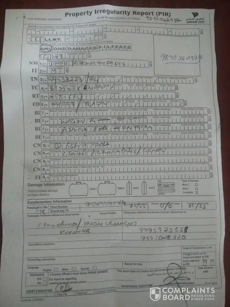 In 18aug I travel from MCT to CCJ in your flight number WY 297, still I didn't receive my 2 luggage's I submitted property irregularity report to Oman air office at ccj still the date they are not responding any call . pls do needful as soon as possible or send me the correct person GSM number.