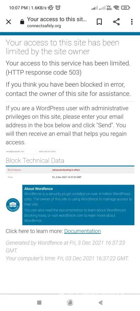 Block Reason: Advanced blocking in effect.