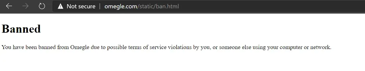 I was banned from a website called omegle for no reason on december 1st 2020 at 3:17 pm. I have no idea why I was banned, because I did nothing wrong. I was talking to someone and then it said I was banned.