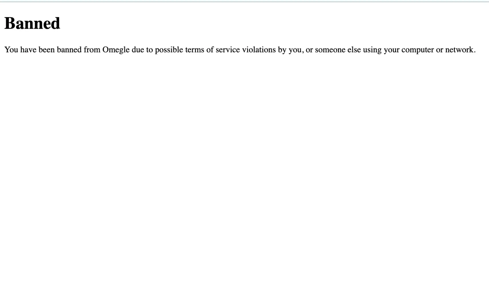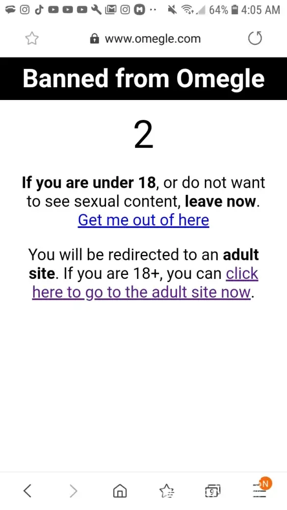 So I was chatting with people having fun, and I meet this one person who wants to play a game with me so I do, so I get tired of playing so I get back on omegle to find out I'm banned.
