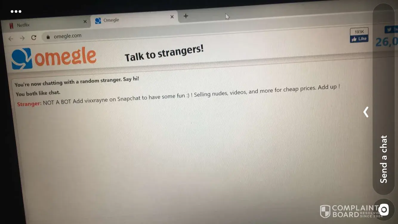 I have cerebral palsy. I'm very much debilitated and don't have many close friends. so I thought I'd go on Omegle and meet people who I can talk to. Instead, what I got was men showing me their dicks. One guy, claiming to be a moderator, asked me to remove my blouse. I bluntly refused. A white screen quickly appeared on my computer telling me I was banned for vulgar behavior and I found myself looking at a video of a five year old girl giving an old man a blowjob. How disgusting. Why ban people like myself when there are so many people verbally abusing other people and exposing their genitalia on camera?
