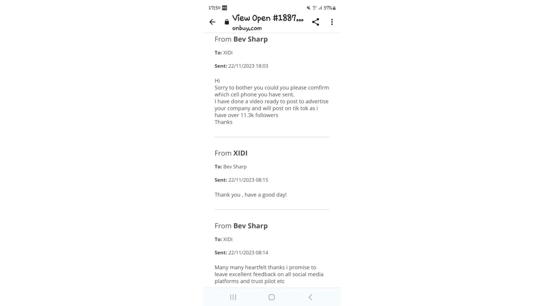 10th Sept i have emailed again as no response from either ONbuy or seller