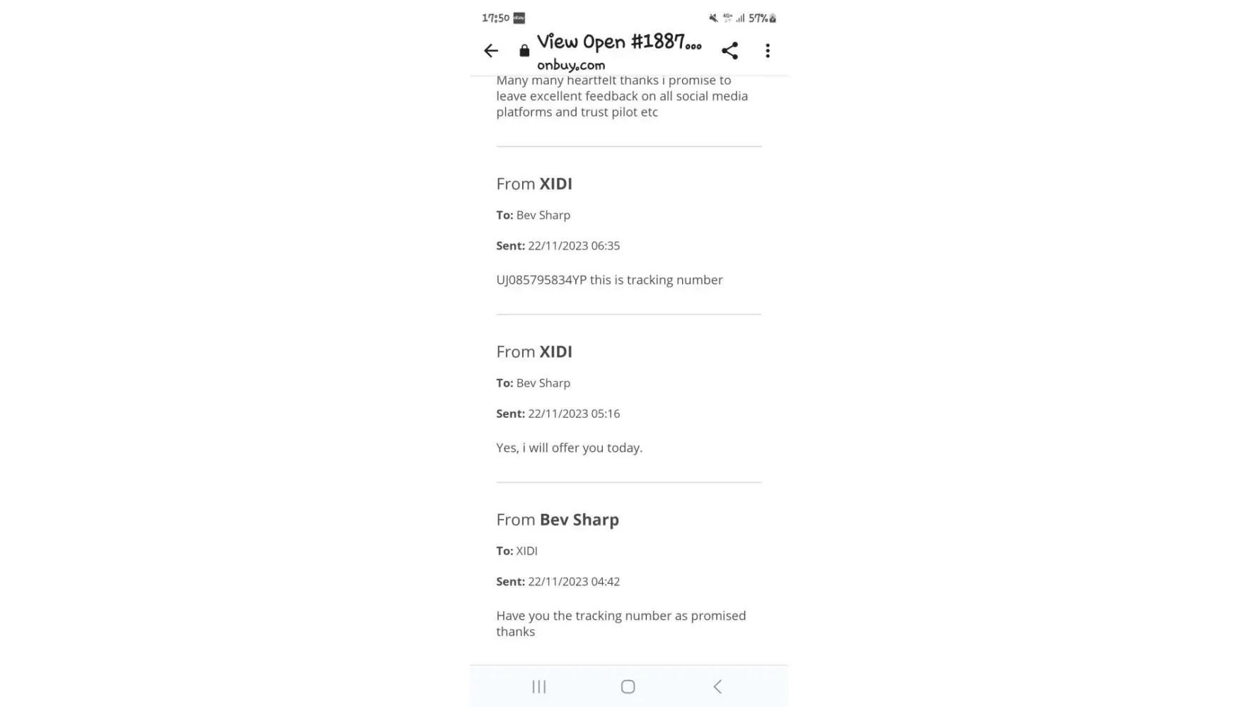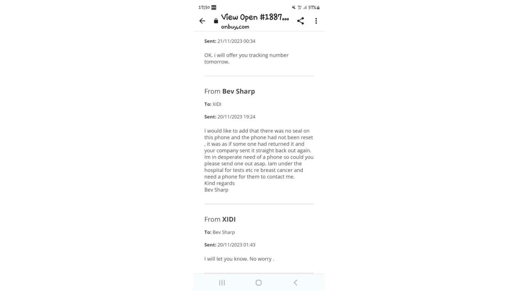 I have been trying to get an item not received from one of their sellers since 26/9/23 the request no 695499 3 times i have asked the customer service person to refund me my money as they are not going to send the item hes allowed them to change the item date to date 2 times on the second time i checked the royal mail tracking number it does not exsist contacted onbuy customer service person again today and hes reply i have tryed to contact the seller but they have not answered well they wont and you will let them change the date again i have not named you because thats unfair but you need to be trained properly on customer care you have had 25 days now but it is like talking to a brick wall all i want is my refund i do have all the emails and checks i have had to do myself as they have failed on customer service