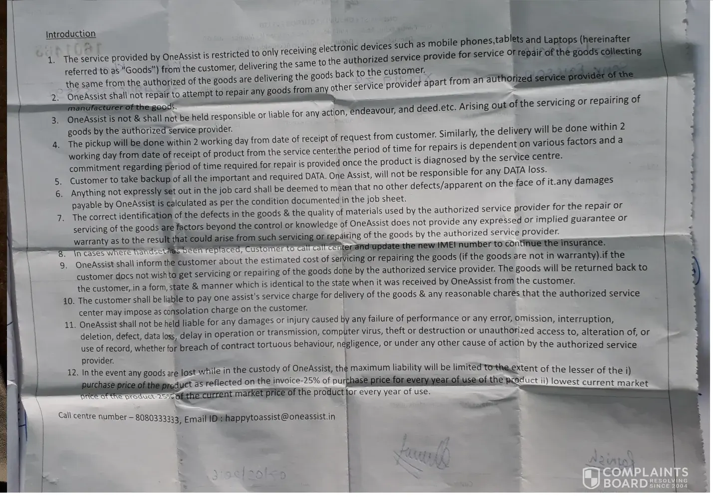 I got my handset insured from M/s OneAssit and it got liquid damaged. They did not pick up handset within given timeline by them. Also I never got any curtsy handset which they promise. After one and half month I got a response from their side that my handset is non-repairable and they will pay me 70% of its' value and retain the handset with them. I know the handset is repairable and when I handed over it to them it was totally working. I cannot buy new same handset from the money they are offering. I tried to contact them over customer helpline and email but no good response. Please help.