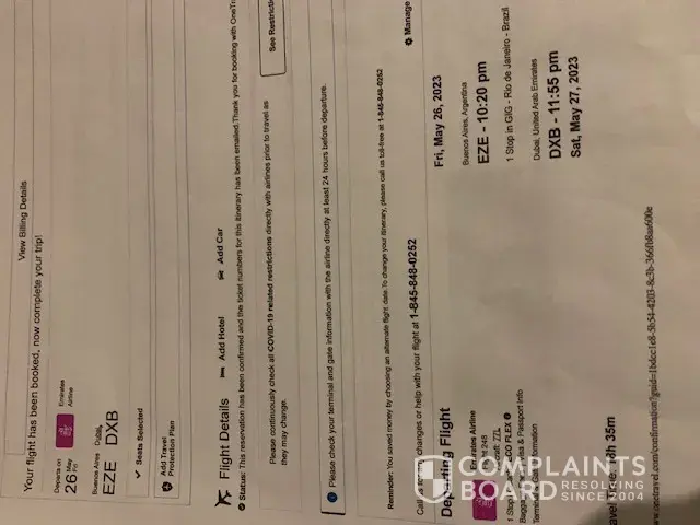 They treatment very badly the lady was screaming the I cut the communication. The problem now without ticket I do not have chance to travel this is a type of fraud because what then do is request the reimbursement to Emirates and keep the many. Unfortunately USA is not like EU where the costumer had a legal proteccion and also the airline is supposed to be involved because provide thenale of the airline to sell the tickets, so in some way had part of the responsibility. As well some official agency need to be involved do not permit the fraud and to be cheat the costumer.
