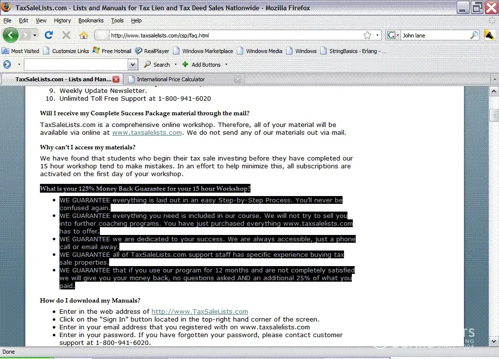 Read full complaint and 2 commentsTaxsalelists.com - Failure to Honor Warranty