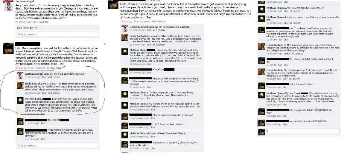 More than 30 days ago I purchased a metaphysical item from very recommended and respectful paranormal and metaphysical seller Mrs. Gula. In meantime Mrs. Gula got ill when dealing with some eBay customer who "betrayed her trust" and her Facebook page and Facebook profile, PayPal account etc. was in hands of her son Methias Chinoa. After a month or so from...