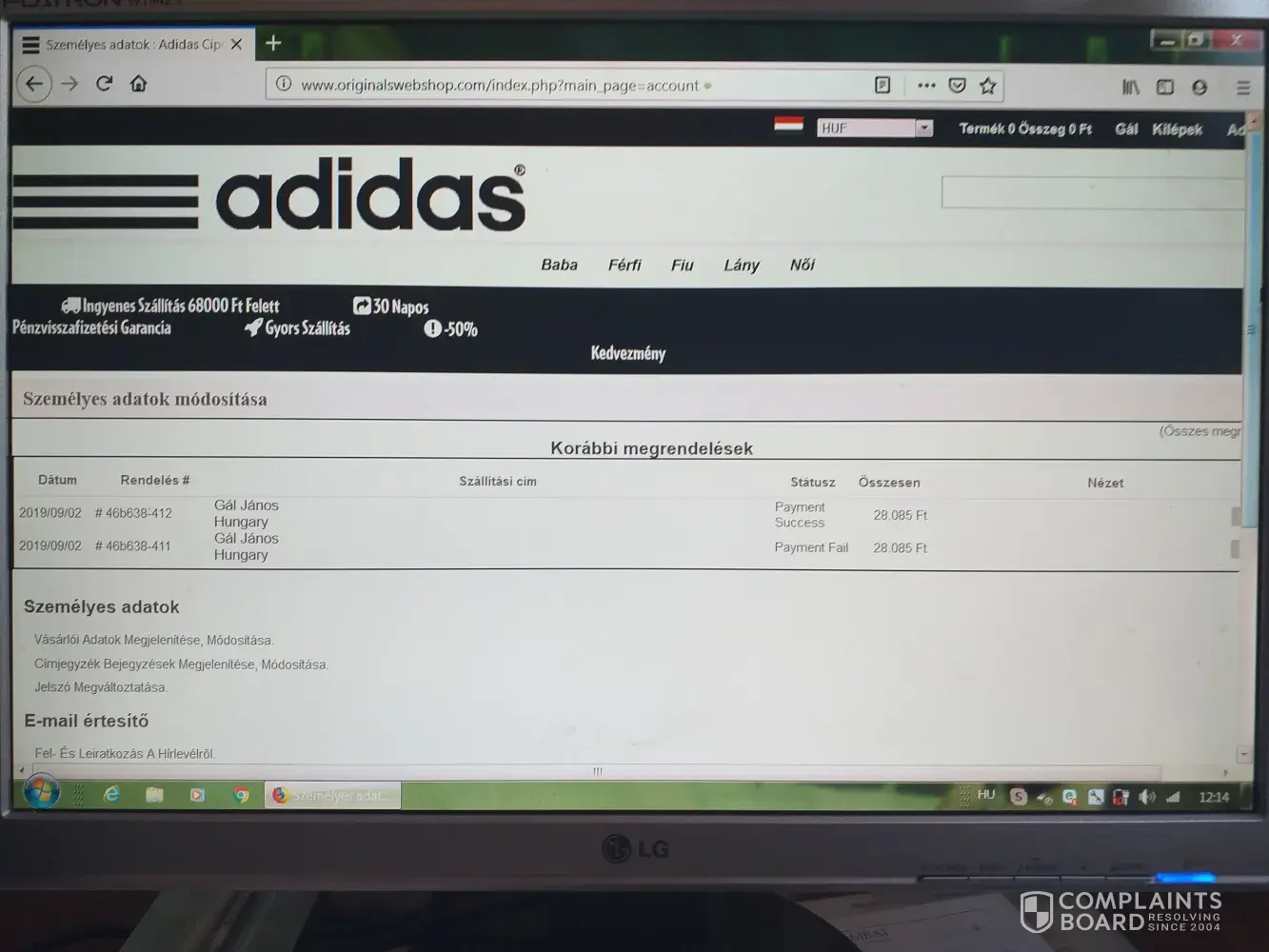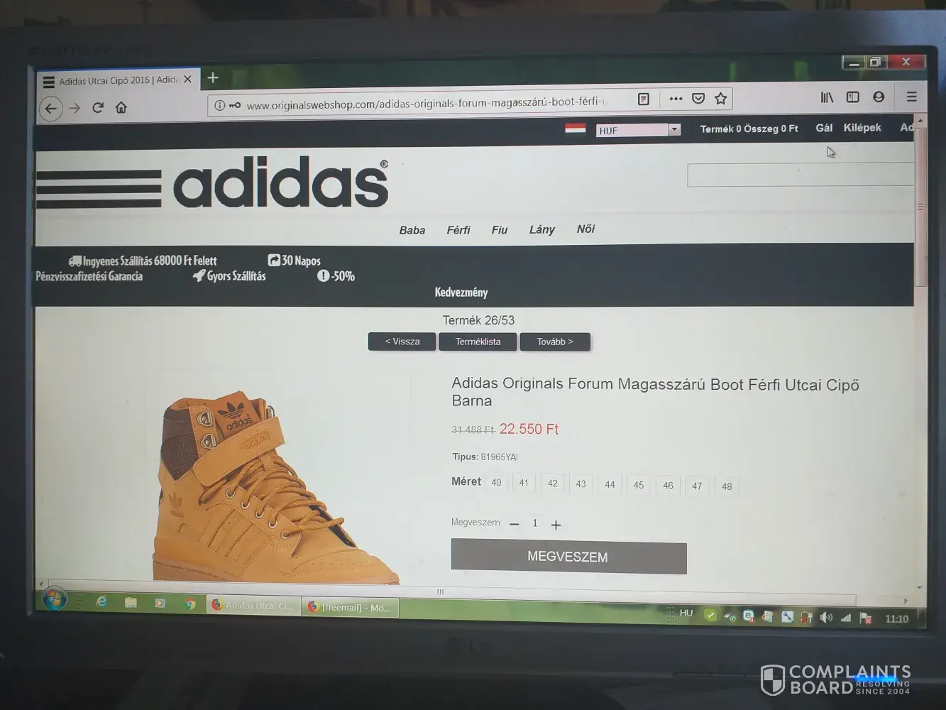On september 2, 2019, I ordered an adidas originals forum high top brown boot men's street shoes from originals webshop.com and a low quality white plastic shoe was posted. Ther was no contact on the site, no phone or email adress. I attach photos of the site and a photo of the shoe I sent to me. I'd like to get my money or my original adidas shoes