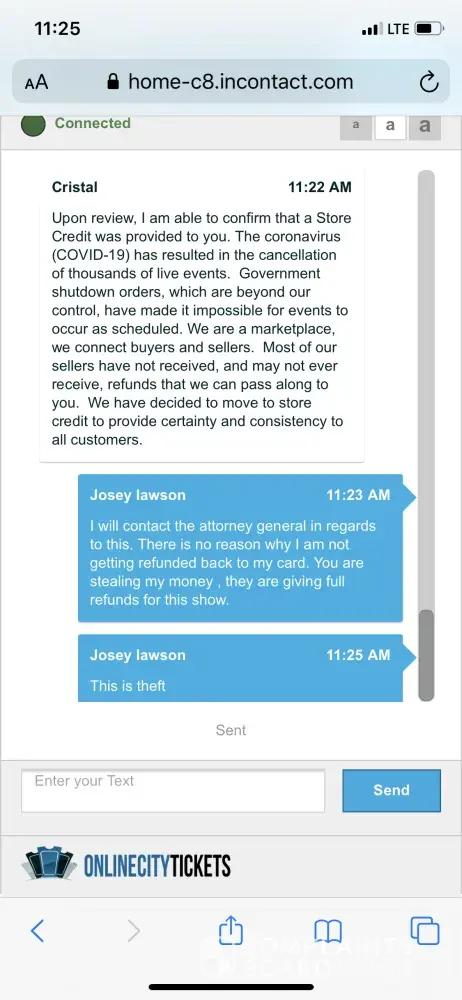 Never in my life have I had the displeasure of doing business with a worse company. I bought tickets to a journey concert on 12/26/2019 which was later cancelled due to covid-19 mitigation protocols. Online city tickets reneged on their contractual promise to refund ticket purchases for event cancellations and later changed to an "all sales are final" policy well after the fact and stated that they will only offer "compensation" for cancelled events. I had originally attempted to obtain a refund from online city tickets (oct) anticipating cancellation of the event due to covid-19 but was told that they could not do so until the event was officially cancelled. I believe, as do many others, that the changes this organization implemented after the fact were underhanded and self-serving with absolutely zero regard for their clientele. Also, from what I understand, the original ticket holder was not only compensated by oct but was also refunded the price of the tickets by the original seller. Why is oct not asking for a refund from the original seller? Why did oct not have insurance? Any attempts to contact the company go unanswered which highlights this companies complete lack of corporate moral values. I can only hope that oct shows true character by doing the right thing and refunding their clients. They might just salvage what little remains of their reputation. Please, save yourself the headaches and think long and hard before doing business with this organization.