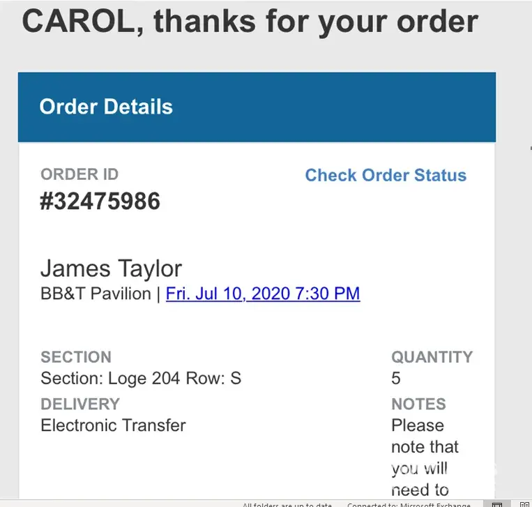 Ticket order not received