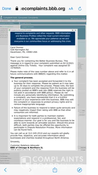 OnlineCityTickets.com complaints: history and resolution overview