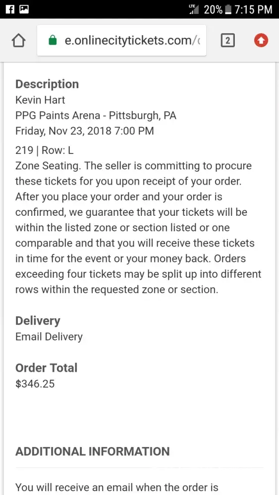 OnlineCityTickets.com and the seller are currently processing your order. You will receive a notification with additional information soon after your order is confirmed. No action is required at this time.