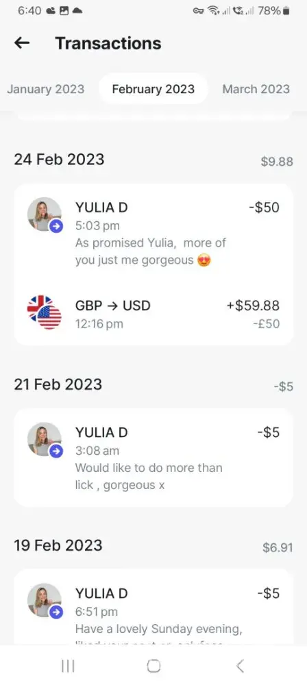 There is nothing nice about yulia, she has created the imagination character for herself and a lavish lifestyle with her earning for dropping her knickers. You can take the [censored] out of the brothel but she will always be a [censored]. Onlyfans encourages this behaviour behind closed doors, nothing she takes money away from onlyfans which suppose to violate thier policy, which they ignore and is worthless. Keep away from both.