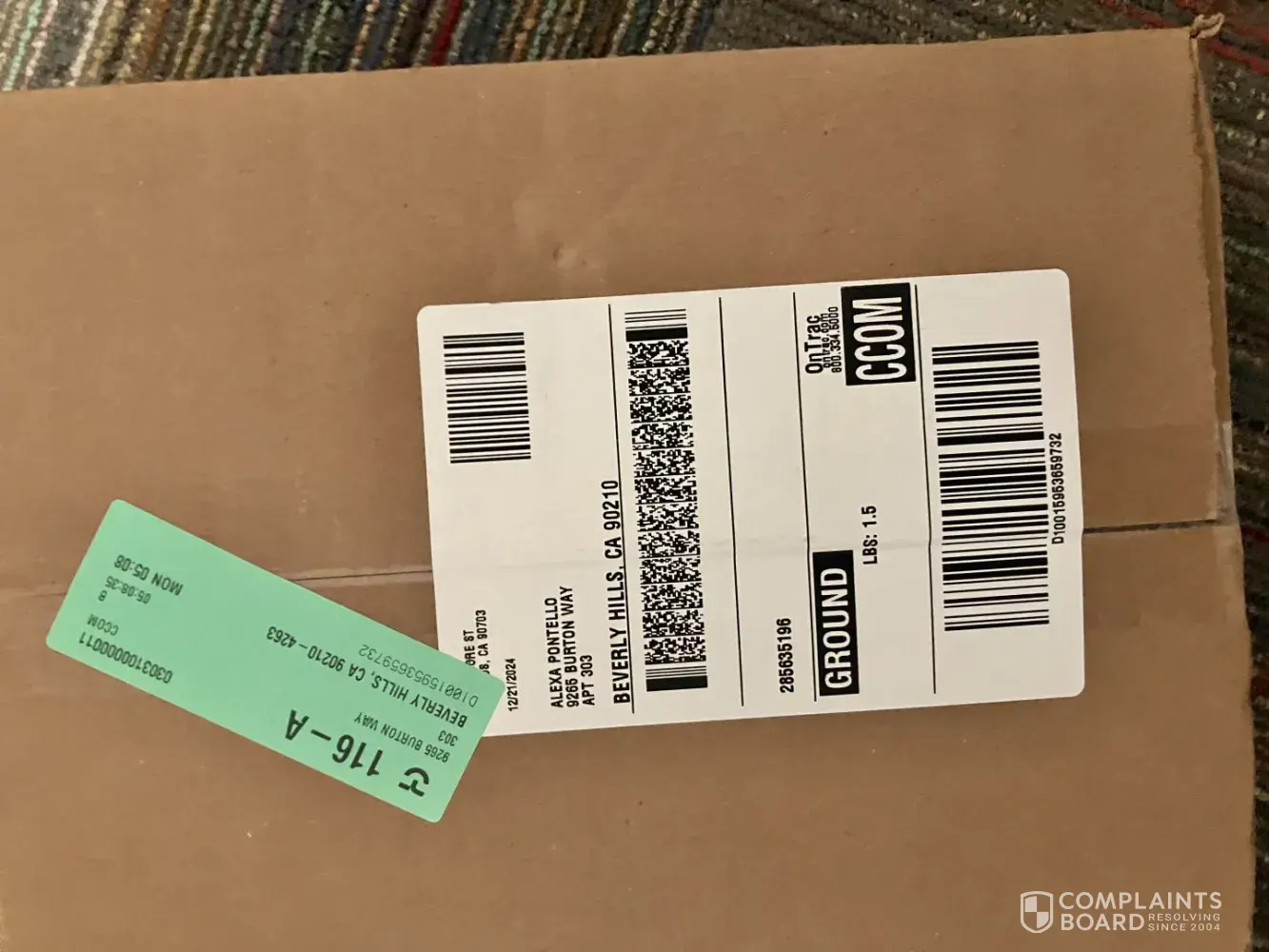 On 5/12/22 OnTrac received a package I ordered from Vans