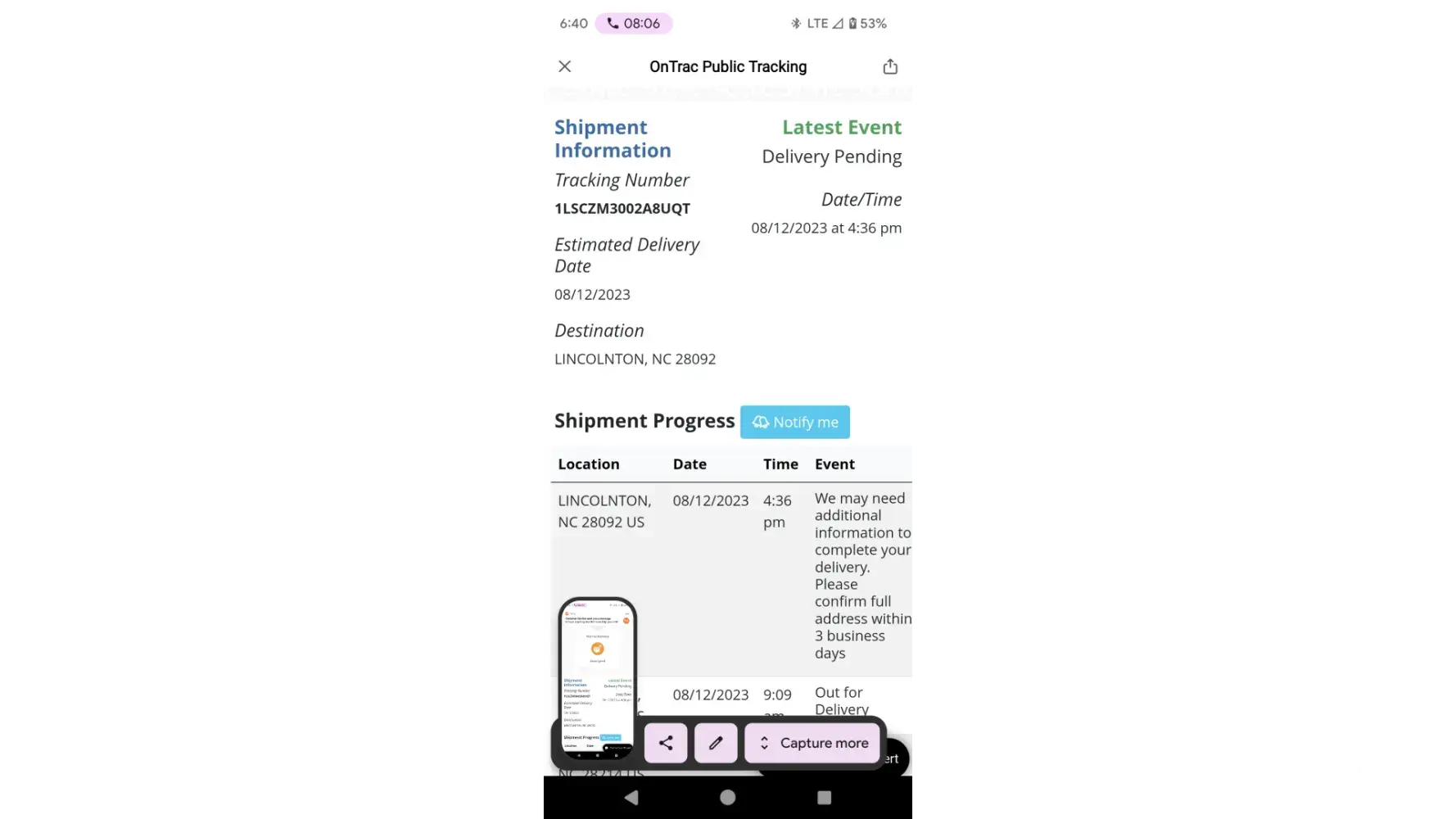 This is what I sent to ONTRAC July 4, 2023: 7:30 PM