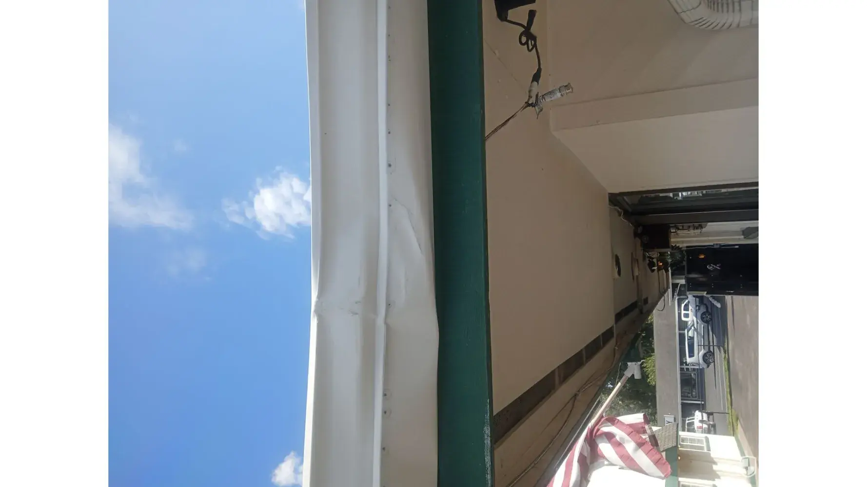 This company's employee was not aware of their surroundings and backed into Brookside Motel's roof rain gutter and caused damage to gutter. It happen around 11:30 am to 12:15 pm on September 6th 2023. The driver gave me this number [protected] i call this number and went to an unhelpful recording that said go to the online website for package tracking only. Also i was out side when your driver hit my gutter and I hear it. This was the west side of the Motel.