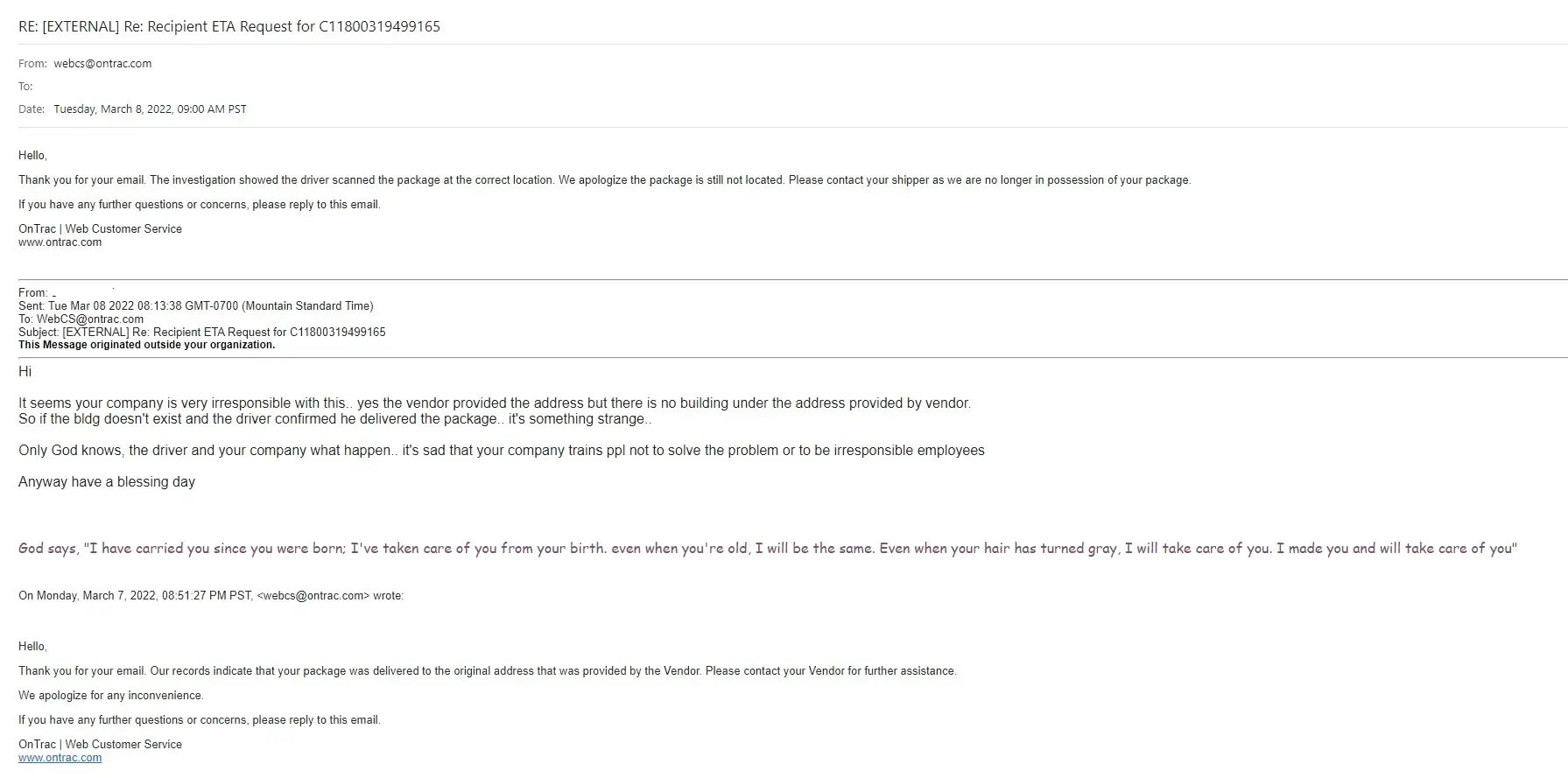 this is what Ontrac respond to me: