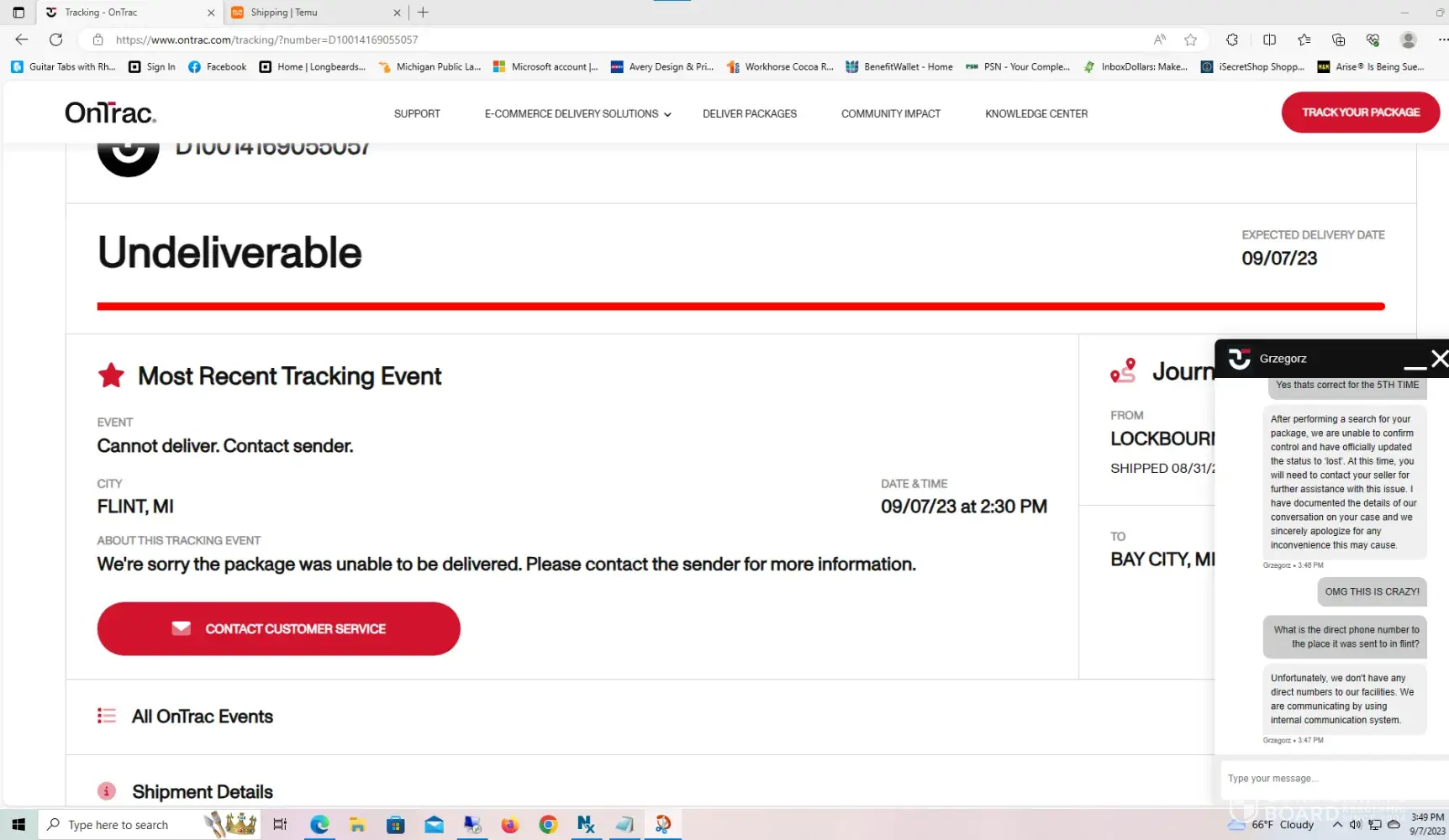 My separate complaint to ONTRAC has yet to receive an acknowledgement or reply...