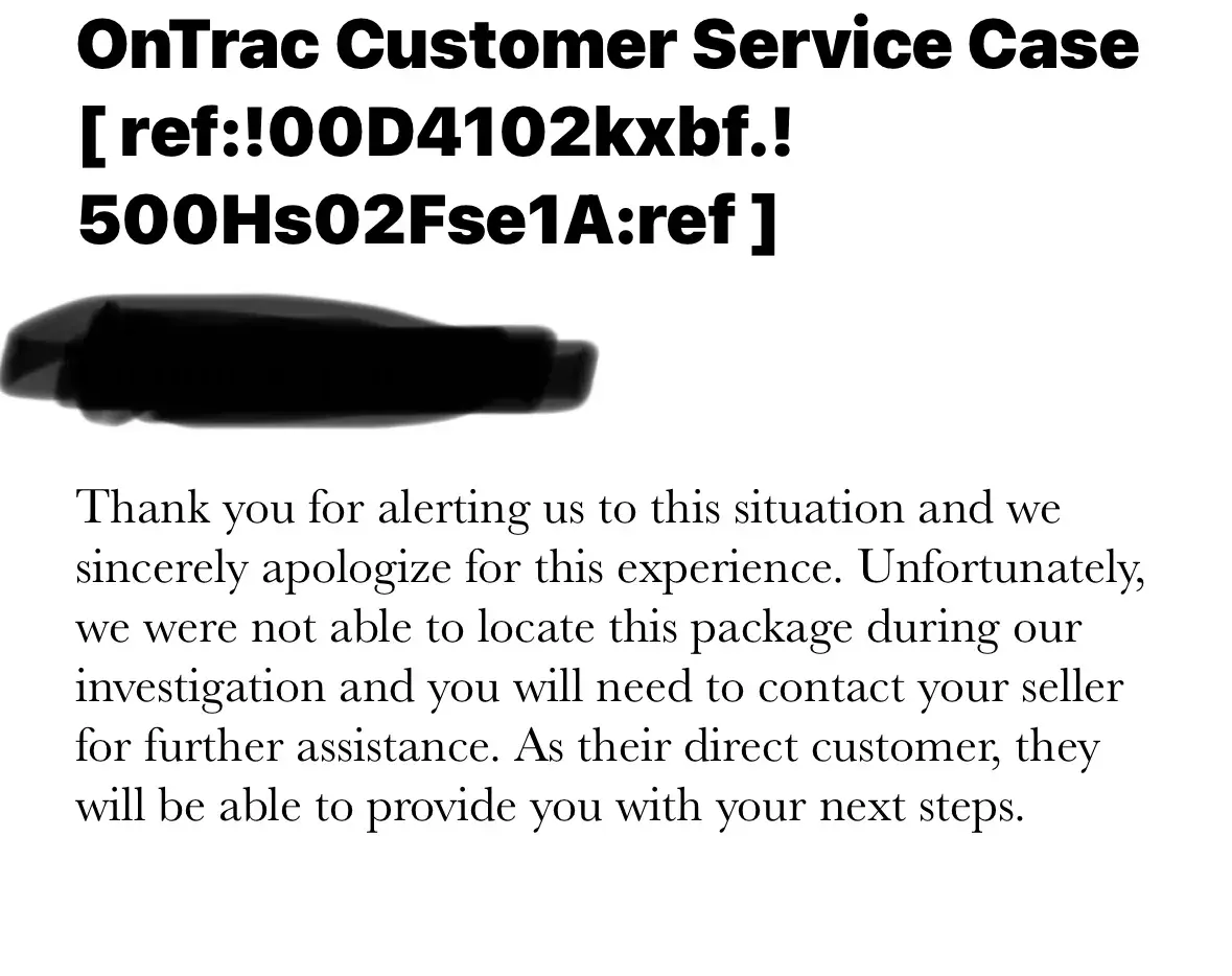 rob requested my tracking number but never contacted me or responded ever again. total fraud . AVOID ONTRAC