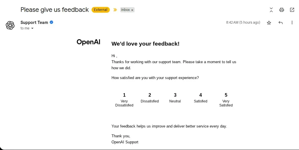 Me: [Answers the email from the one from OpenAI in the email that OpenAI sent]