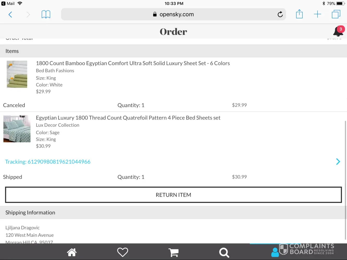 Order number [protected]. I ordered one set of sheets and i cancelled the other set but i got charged for both sets. My account needs to be credited in the amount of $29.99 as item was CLEARLY cancelled! I was charged for an item i not only cancelled but did NOT recieve. I am very disappointed and upset, i will never shop here again.