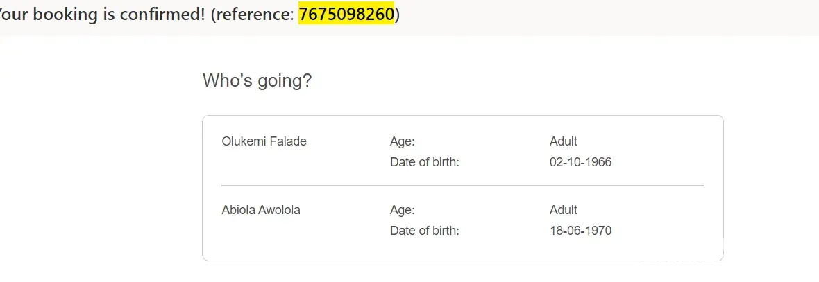 Flight booking reference is [protected]