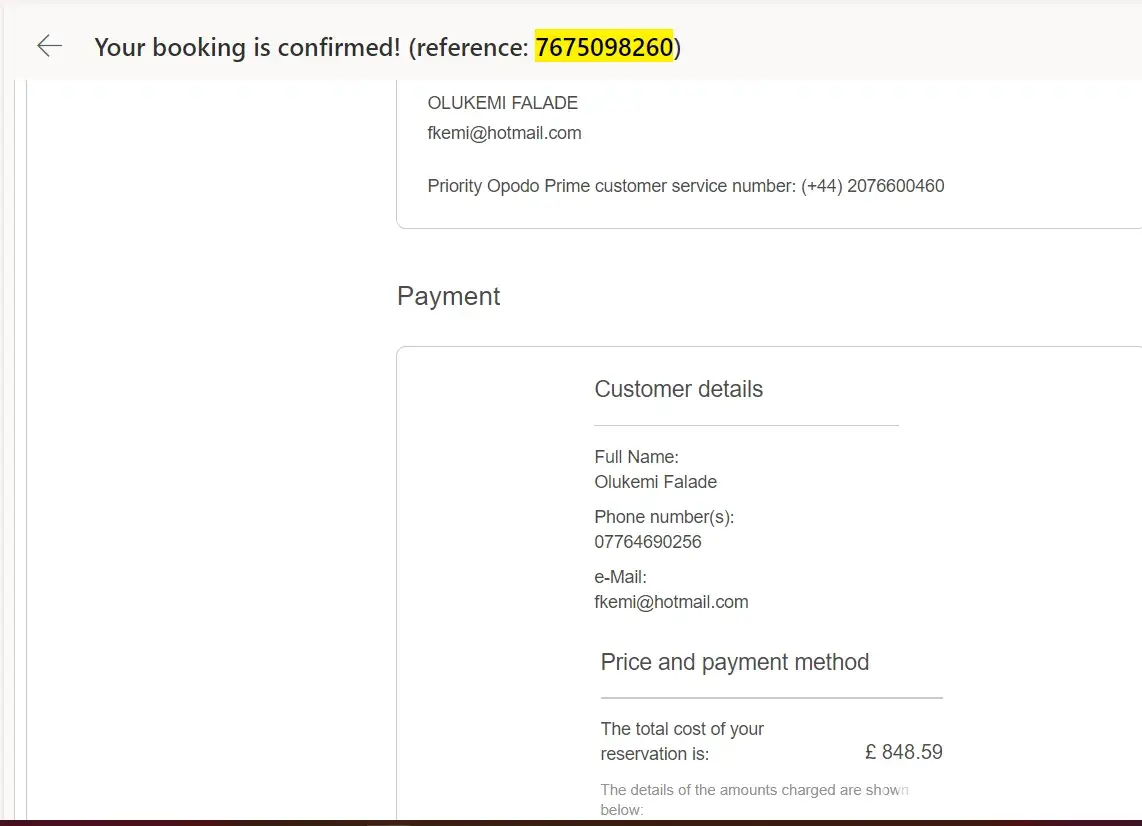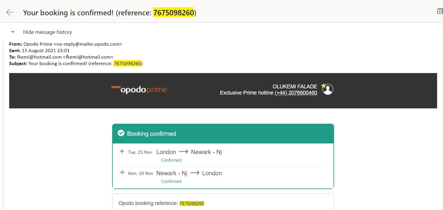 My Opodo booking reference is: [protected]