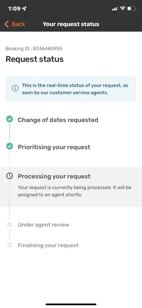 hello i am elsida i have made a booking with opodo for 30 /12/2021 and return to 9/01/2022 but i want to travel earlier for some reason my request is under process for some days now please help me cause the dates is soon and i want to resolve quickly . the date desired are 17/12/2021 and return 26/12/2021 .