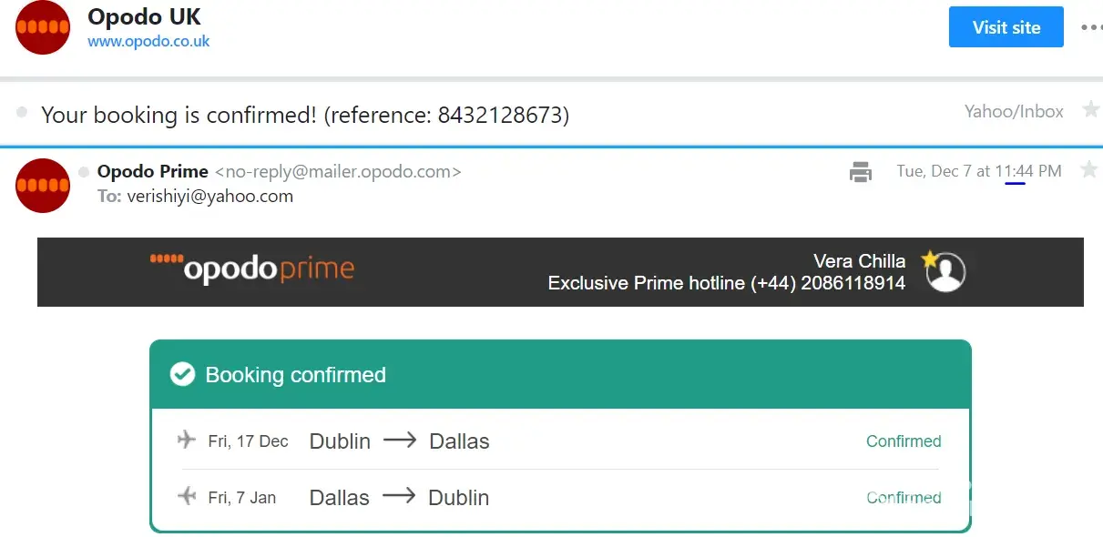 Try their Live chat, It appaers you select Prime by default without realising you will be charged in 30 days time. My Bank informed me they declined this 59.99 payment and Opodo have made several attempts since. Live chat conformed its cancelled and I wont be charged. Give it a go and copy paste the messages for record as they wont sent a transcript. If they dont reverse your payment go to the card issuer with the transcrip copy.
