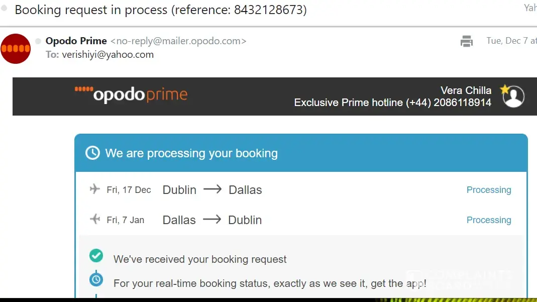 I had the bad choice to book threw Opodo my trip from Copenhagen til Buenos Aires the 26/10/2021, for 5/01 til 16/03 with airline Lufthansa. Reason of travel to see my family after 3 years and go back to my homeland. The 11/11/2021 I spooked with an agent to change my flight for 1/01 he charged me 40, 63 GBP and told me everything its ok.. the 23/12/2021 I entered to see my flights status and results that OPODO never changed my flight never refunded me 40, 63 GBP and my original flight was gone, since then everything its a nightmare for me, that day an agent named Rahul changed without my permission the flights again for 1/01 (my suspicious is that the original flights was already gone) but not confirmed since they was asking 500 GBP thing that I said no (the team will handle it, no worry he said)), the 24/12 I received a call from them telling me that they will calll back with solution in cpouple of hours, now the 27/12/2021 ive been trying to contact them and still waiting for a fair solution since they never called me back, it wasnt my fault that they screwed up things with my flights in the first place... now im waiting for a solution and a call from them thing that can never happen, honestly I want a refund or my flights confirmed ASAP for the price that I payed+ the 40, 63 GBP for the change that they never did.