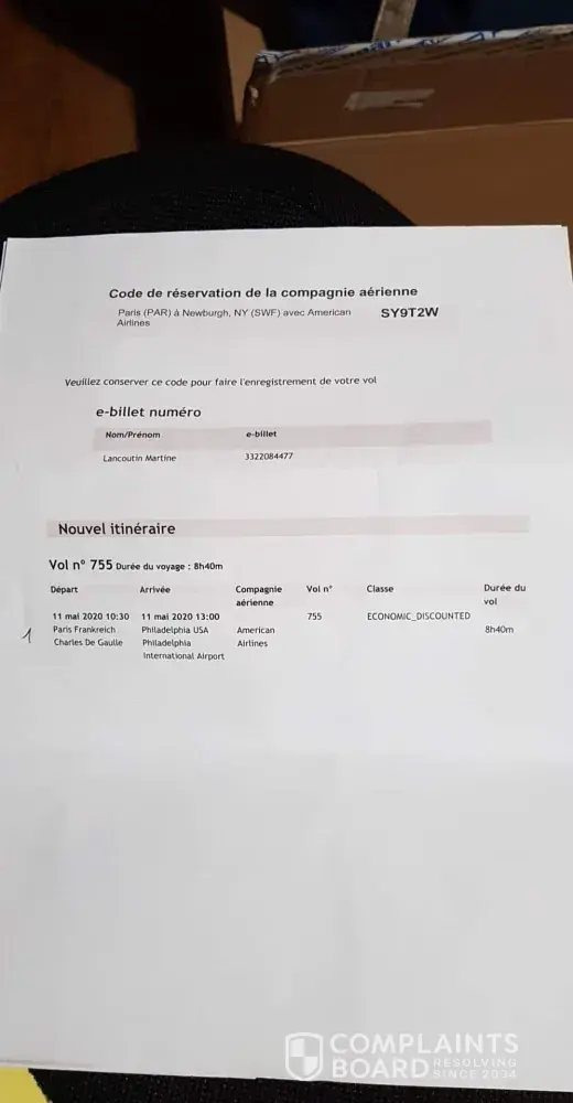 Desired outcome: Voucher for the total cost of the ticket € 329,98