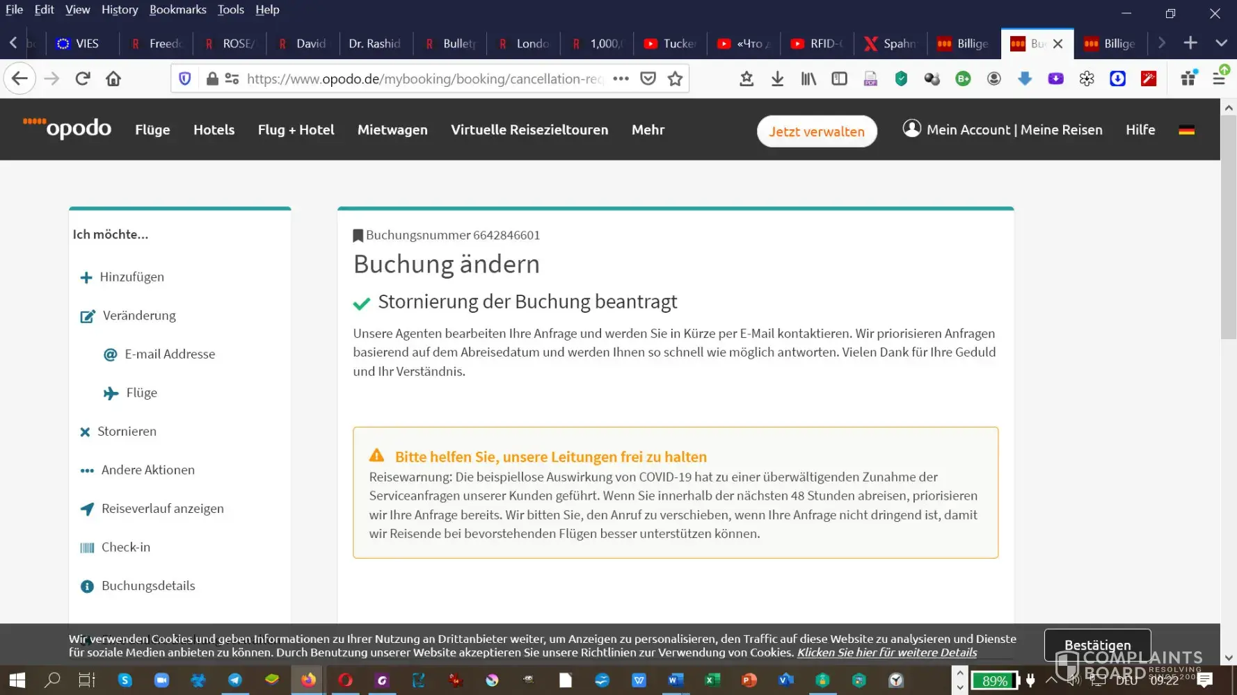 Flight cancelled by airline (covid), no reimbursement/voucher from opodo