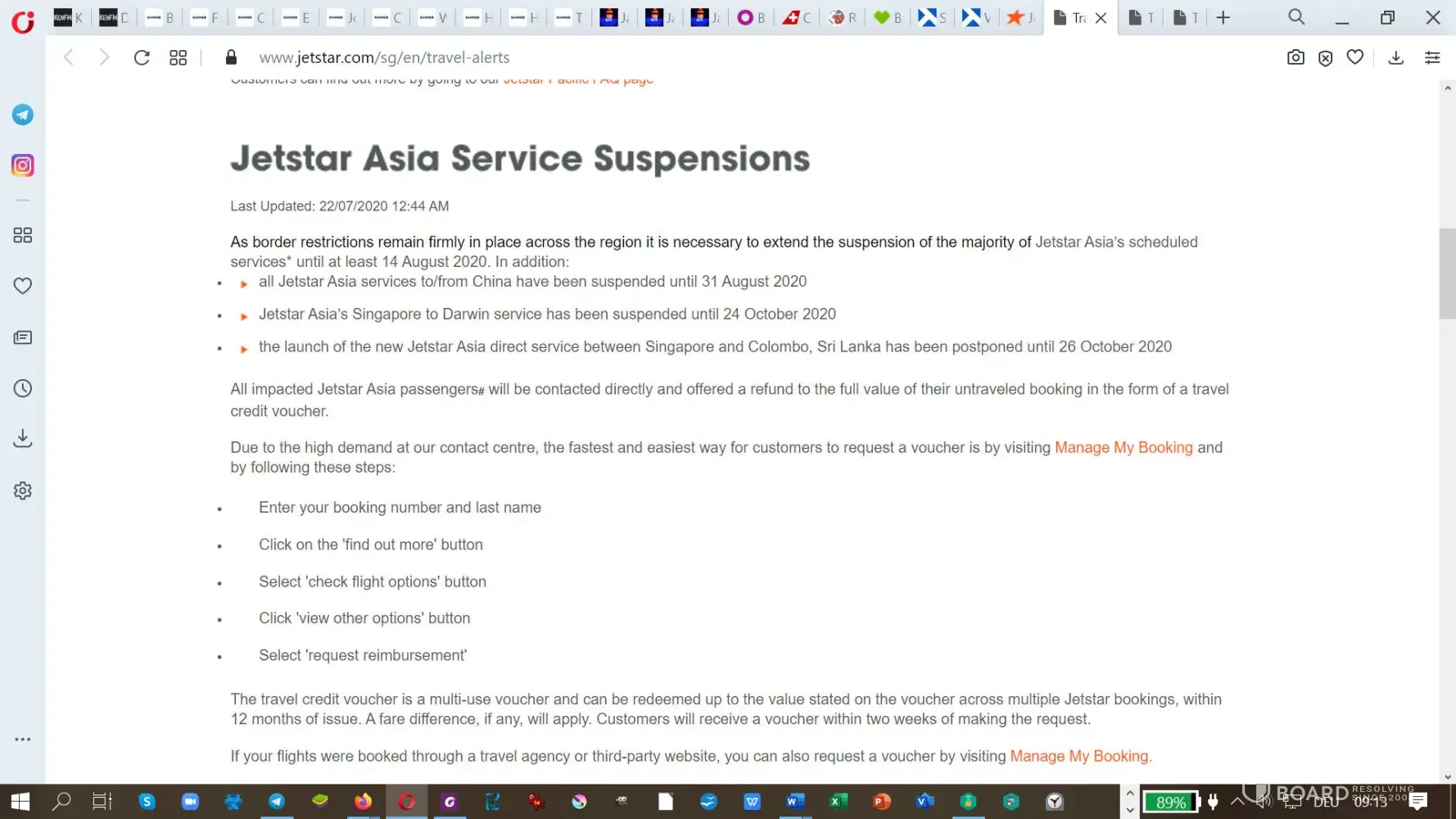 I have tried the Facebook Direct Messaging which linked to Manage My Booking, where I was able to bring up all ticket details but not do the most important thing: register a request for refund.
