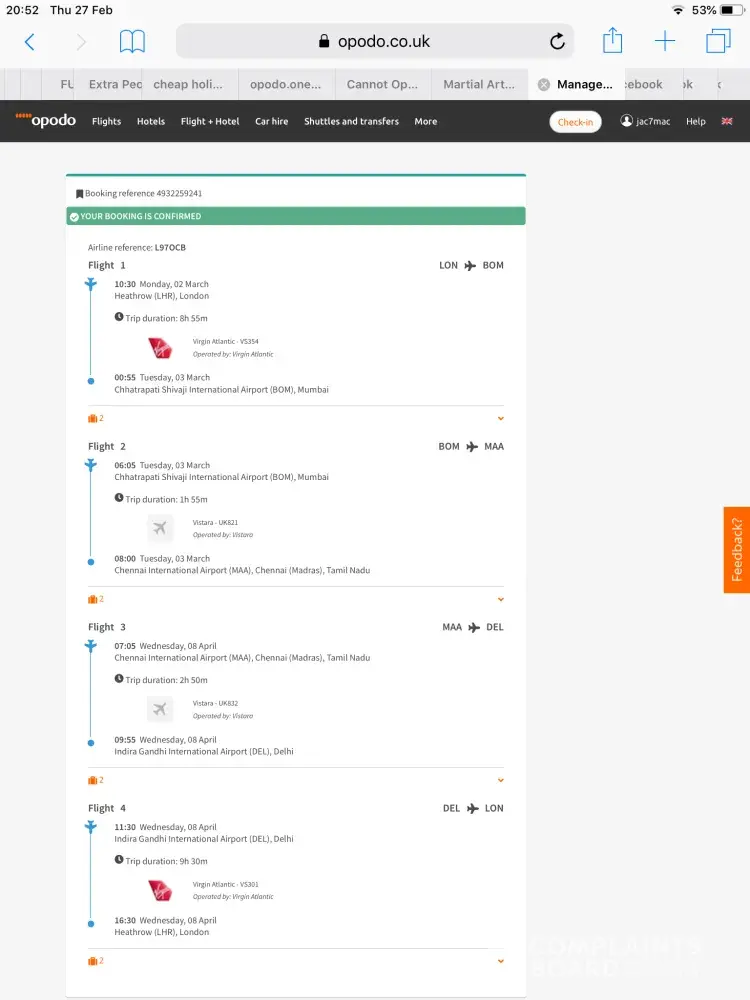 Opodo has caused the most stress ever, in my 40 years of flying.,