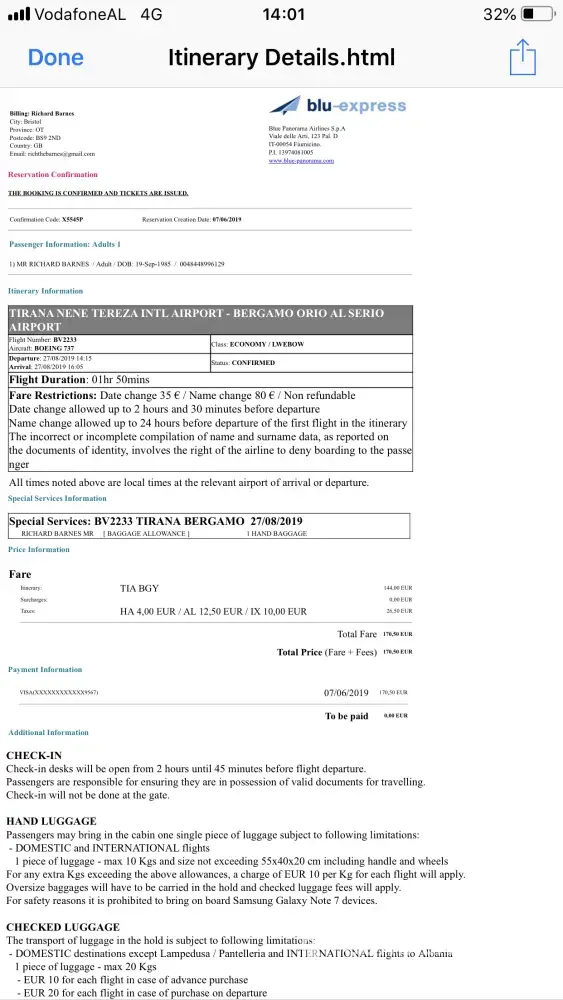 I book my flights Birmingham to Cyprus Larnaca 25th August coming back 1st from Larnaca to Birmingham. It took me 2