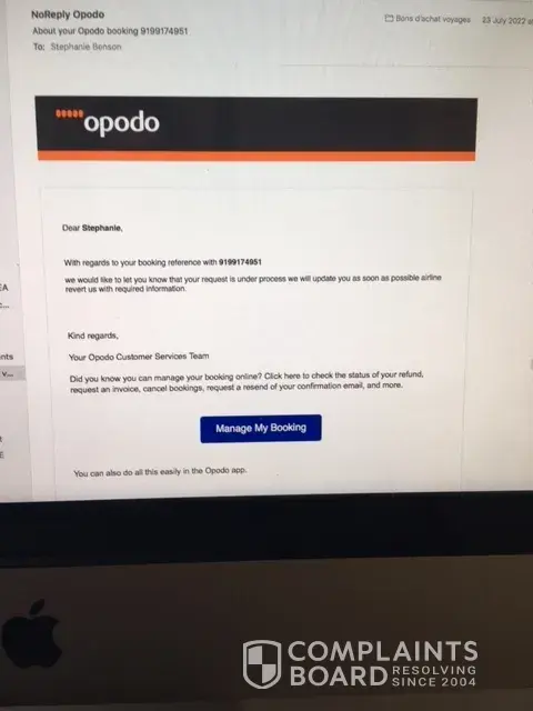 We spoke to Opodo several times, each call took approx 1 hour & each time we were promised that an alternative flight would be provided by Opodo. I escalated the issue 3 times & was assured that the issue would be resolved. the day before my flight I had to buy a new ticket for the cancelled part of my journey.