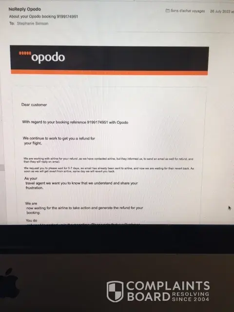 Opodo Refusal to give refund after airline cancelled final leg of journey
