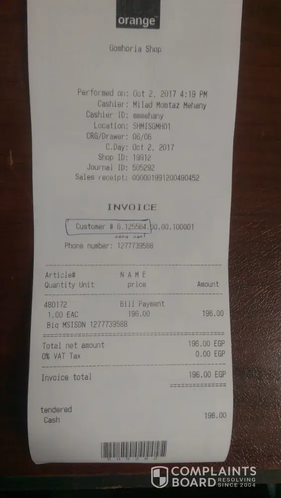 my line [protected] has been suspended in spite of payment in advance 700 pounds in my account, claiming that the client who added this line enrolled it in sub account, this seems to be unethical behaviour from Orange's responsible clients who did so, i spent about an hour trying to solve this problem in Gomhoria Shop