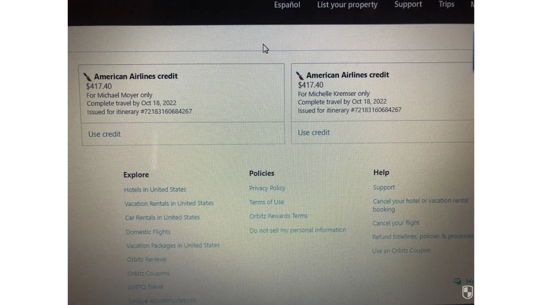 On 12/13/21, we booked 2 economy round trip tickets from PA to AZ for $834. Itinerary #[protected]. On 1/07/22, we had to cancel the flights due to the couple that was traveling with us came down with Covid. We accepted 'flight credits'. On 1/10/22, we found out we could go alone, and rebooked the flights. We tried to do this online by clicking on the 'use credits' link. This would not load, so we had to call Orbitz and do it over the phone. We were told the price would change $666. I assumed that meant the tickets would cost $666. We get back from the trip and our account still says that we have $834 in credits. The representative said to disregard this, and that the credit was used. This means that we paid $1500. for 2 economy round trip tickets from PA to AZ. We used Orbitz because of their ads saying that they are cheap, This sounds very expensive.