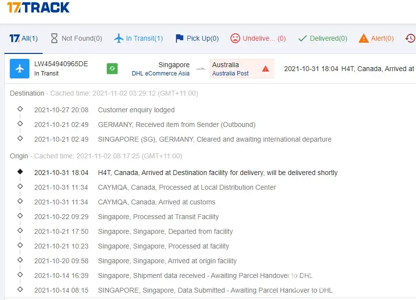 my order # E10-906482 was shipped to address in Australia but after sitting duck in Singapore redirected back to Canada.