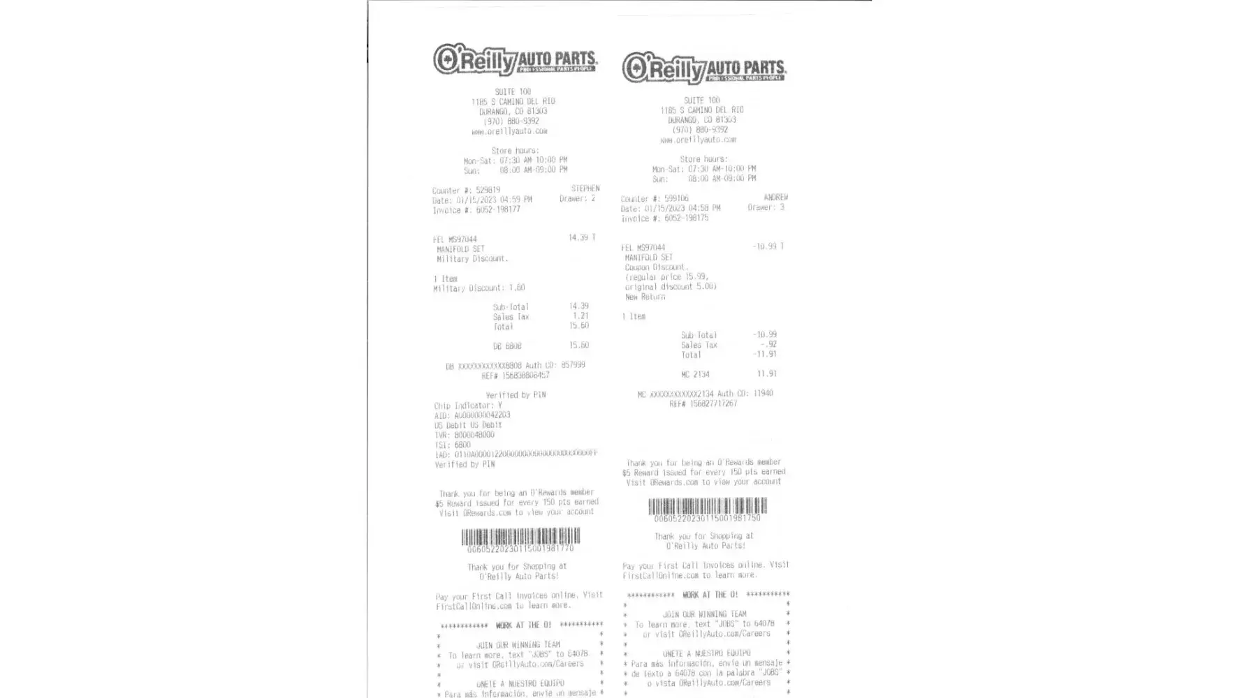 On dec. 30, 2:00 pm, an older employee questions my eligibility for my military discount again, even after decades of being a regular patron of O'Reillys and submitting my dd-214 military discharge paper previously on multiple occasions. He demands a military I D card which was never issued to me (I served 1975 thru 1978), all I have is the dd-214...