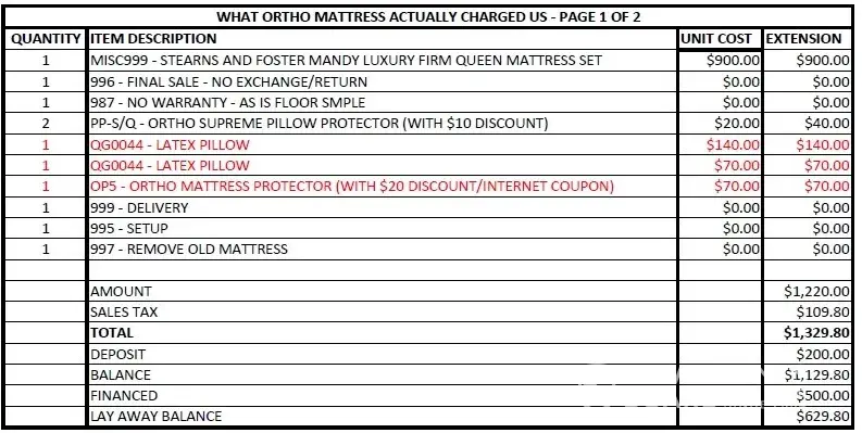 I believe that the mattress business is one step BELOW the used car business. Do yourself a favor and do not buy from ortho and avoid Simmons mattresses. Simmons recently filed for bankruptcy, which is not a surprise.