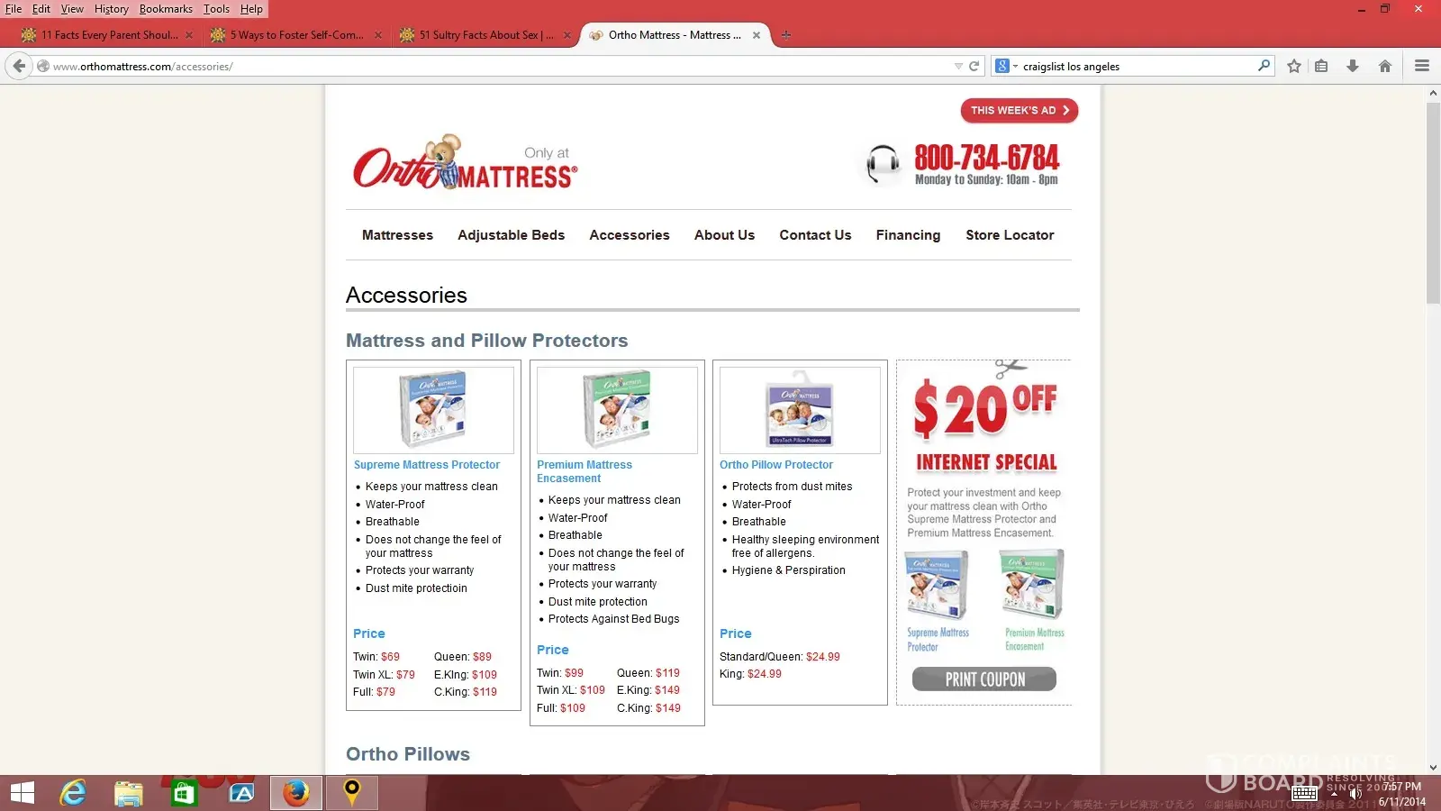 I have also filed a complaint with the Better Business Bureau (BBB). The BBB gives Ortho Mattress Co an F rating. According to the BBB there are 80 complaints on file; Ortho has only answered 4 complaints.