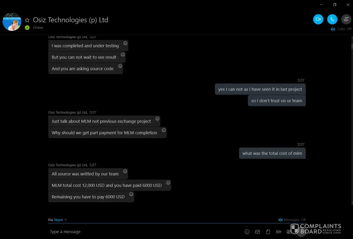 6 Osiz Technologies Complaints