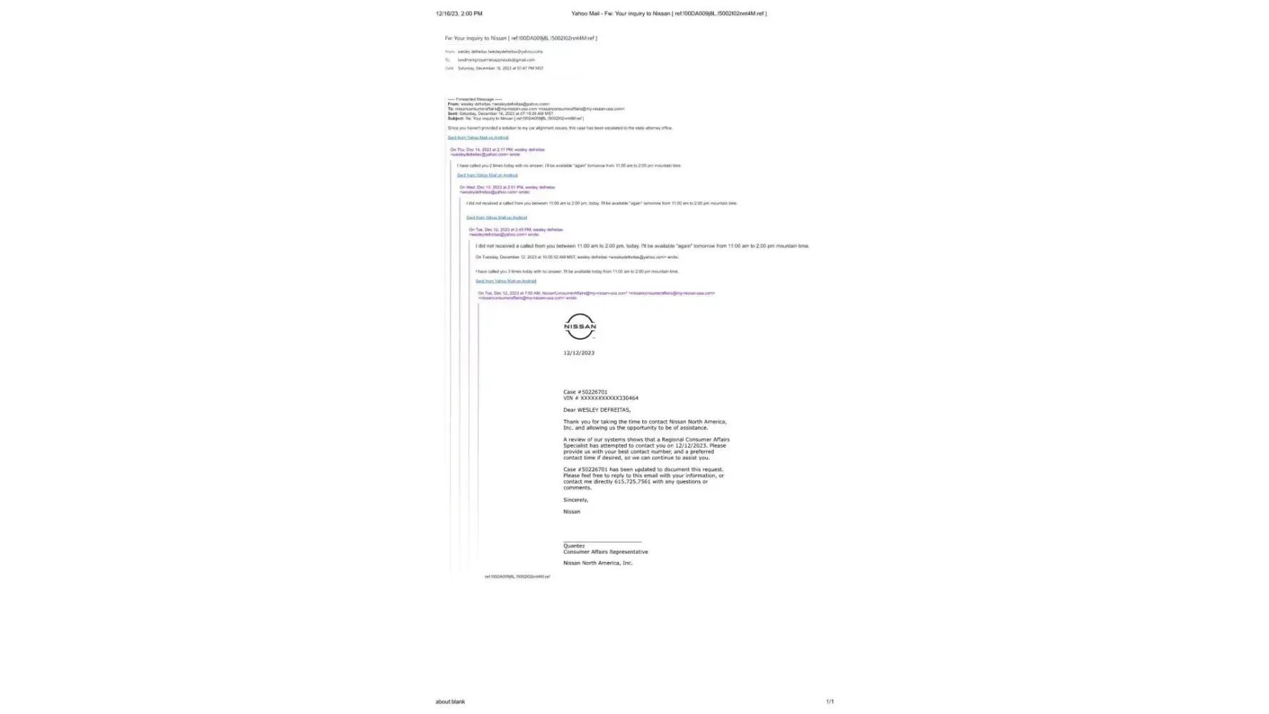 Nissan of North America refuses to provide me with a solution regarding my vehicle misalignment. I have taken my vehicle to the Nissan dealer more than 3 times to have the alignment issue resolved. My vehicle still under Nissan factory warranty. Misalignment can put undue stress on a vehicle’s suspension. This poses a risk of damaging suspension...