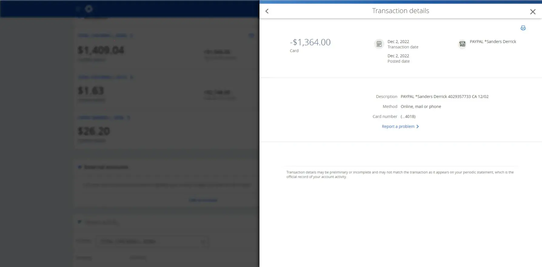 On 12/2/22, I sent a transfer request of $1364 from my Chase Debit Card to my PayPal Debit card. At first Chase denied the transfer request and sent me an email asking me if I made the request, I replied back, yes it was me. So, I go back to PayPal to complete the transfer and it was declined/denied 3 more times. By this time Chase had sent the funds and...
