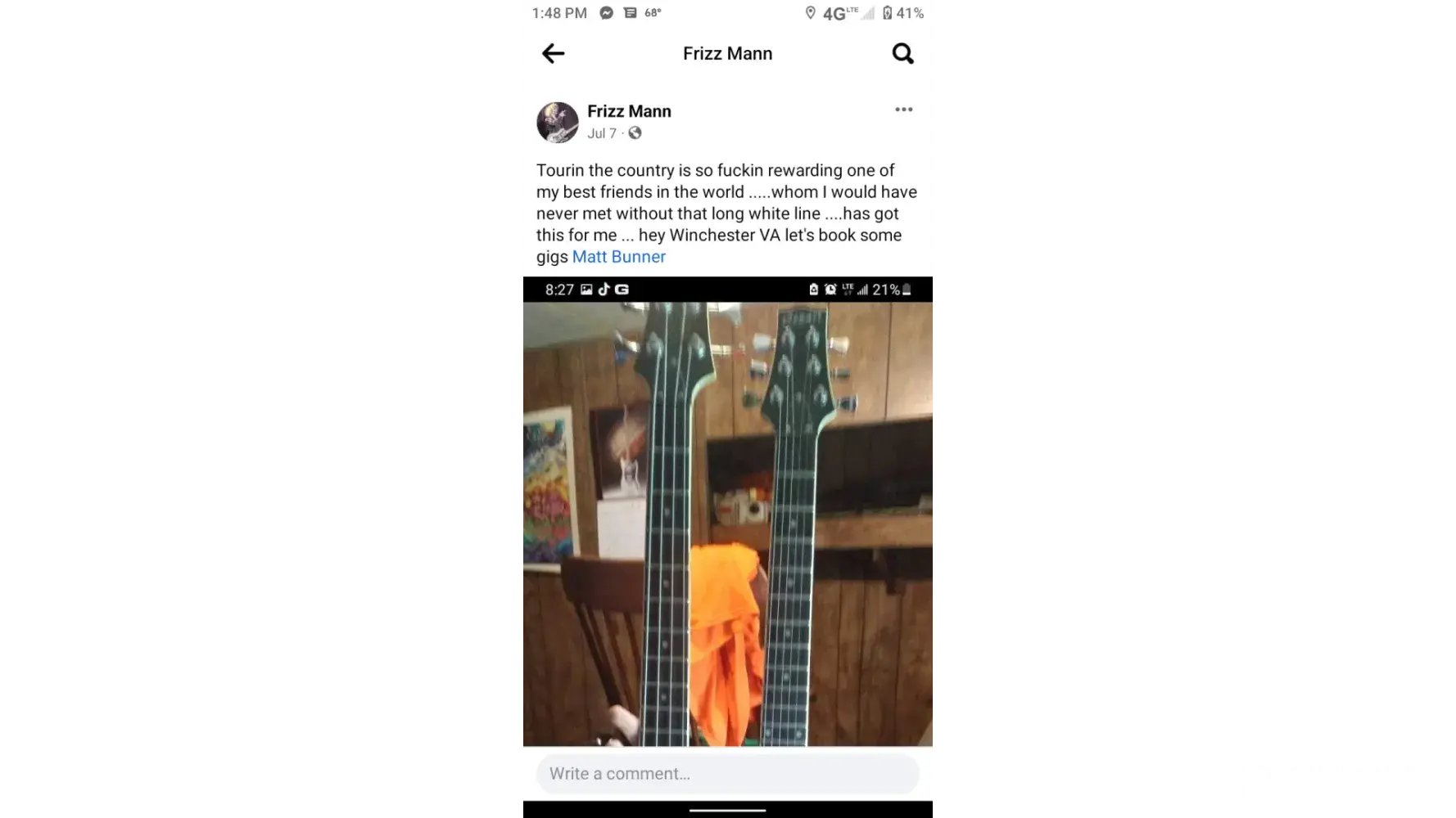 Someone stole several guitars from me and took them to Bears trading post to sell. I have sufficient evidence proving ownership and discrepancy in the individual's story. I have done business with Bears for quite some time they are familiar with who I am. One guitar that is a unique (a double-neck four-string bass and six-string combo) was taken there in...