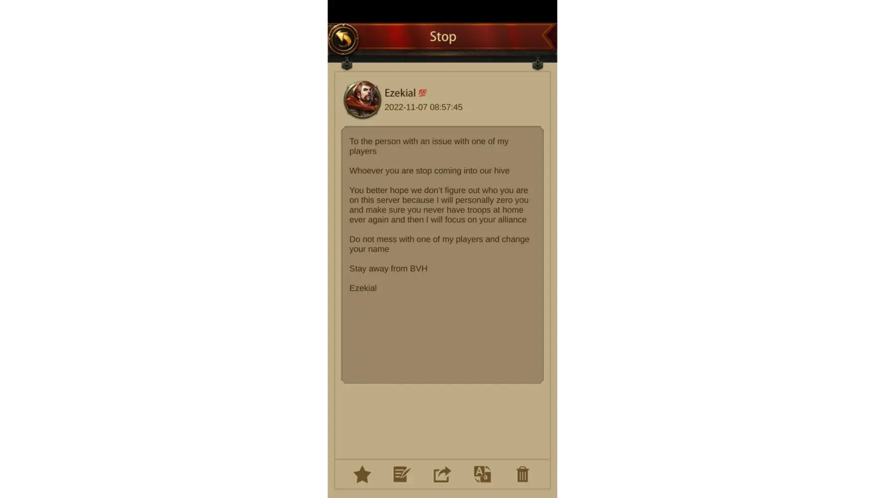 There was a player who kept sending unwanted private messages to me earlier in the week, which I stopped replying to but then they started harassing and verbally attacking me and saying a lot of hurtful things which were not true. I reported it with screenshots. I blocked them as was instructed by Evony customer support. Today, I was told by alliance...