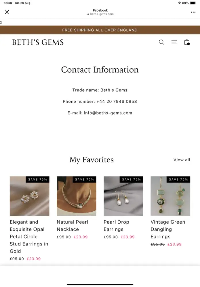 I paid £56 for items supposed to be gold ,also were not the same as pictured , Was going to send back , but after reading different items realise this is a waste of time .The advert on Facebook was misrepresented,did not give the impression the company was in China would not have ordered if I had known. Phone number +[protected] . Tried to phone no...